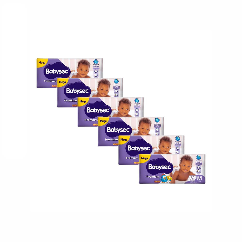 Kit com 6 pacotes Babysec Premium M com 32 unidades cada