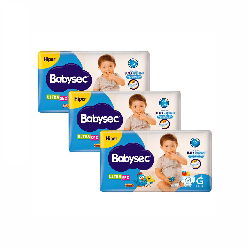 Kit com 3 pacotes de Babysec Ultrasec G com 64 Unidades cada