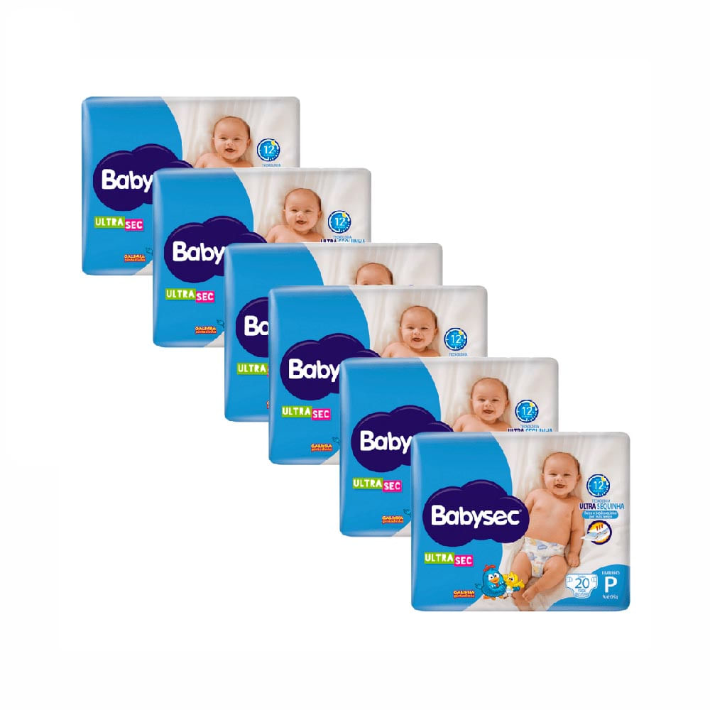 Kit com 6 pacotes Babysec Ultrasec P com 20 unidades cada