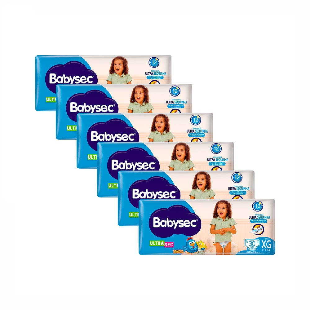 Kit com 6 pacotes Babysec Ultrasec XG com 30 unidades cada