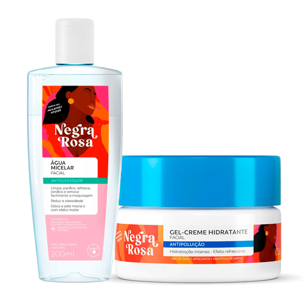 - Conteúdo do kit: Gel Creme Hidratante Facial Antipoluição Negra Rosa 100g - 1 Unidade; Água Micelar Negra Rosa Antioleosidade 200ml - 1 Unidade.