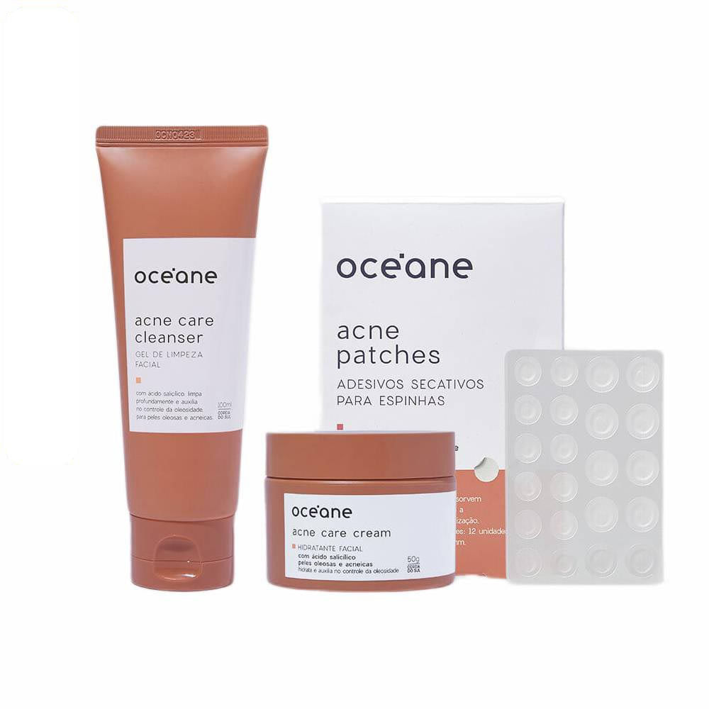O Kit Gel de Limpeza + Hidratante Facial + Adesivo Antiacne foi desenvolvido pela Océane para cuidar da pele oleosa e acneica. Este kit oferece produtos para os dois principais passos de uma rotina de skincare.