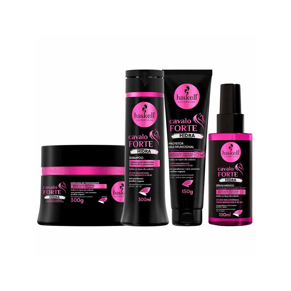 Kit Haskell Hidra Cavalo Forte Shampoo + Máscara + Protetor Multifuncional + Sérum