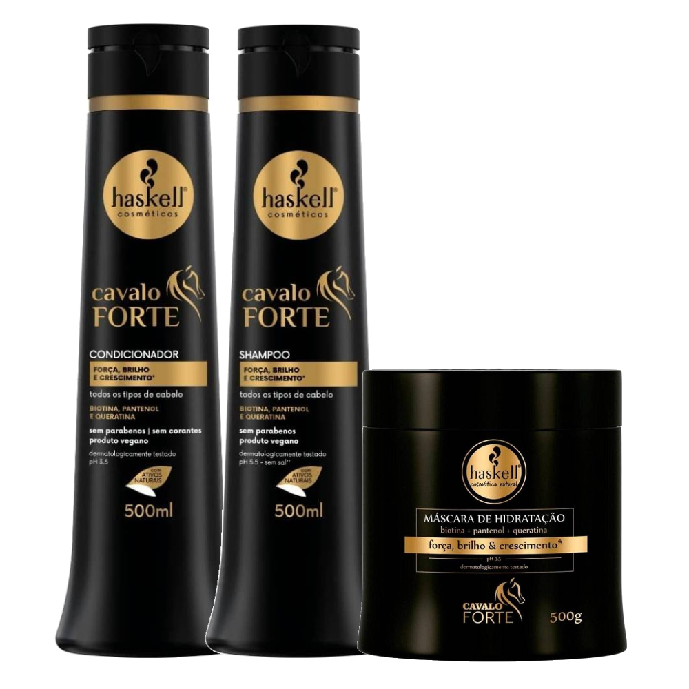 Kit Haskell Máscara Capilar Cavalo Forte 500g + Shampoo Cavalo Forte 500ml + Condicionador Cavalo Forte 500ml