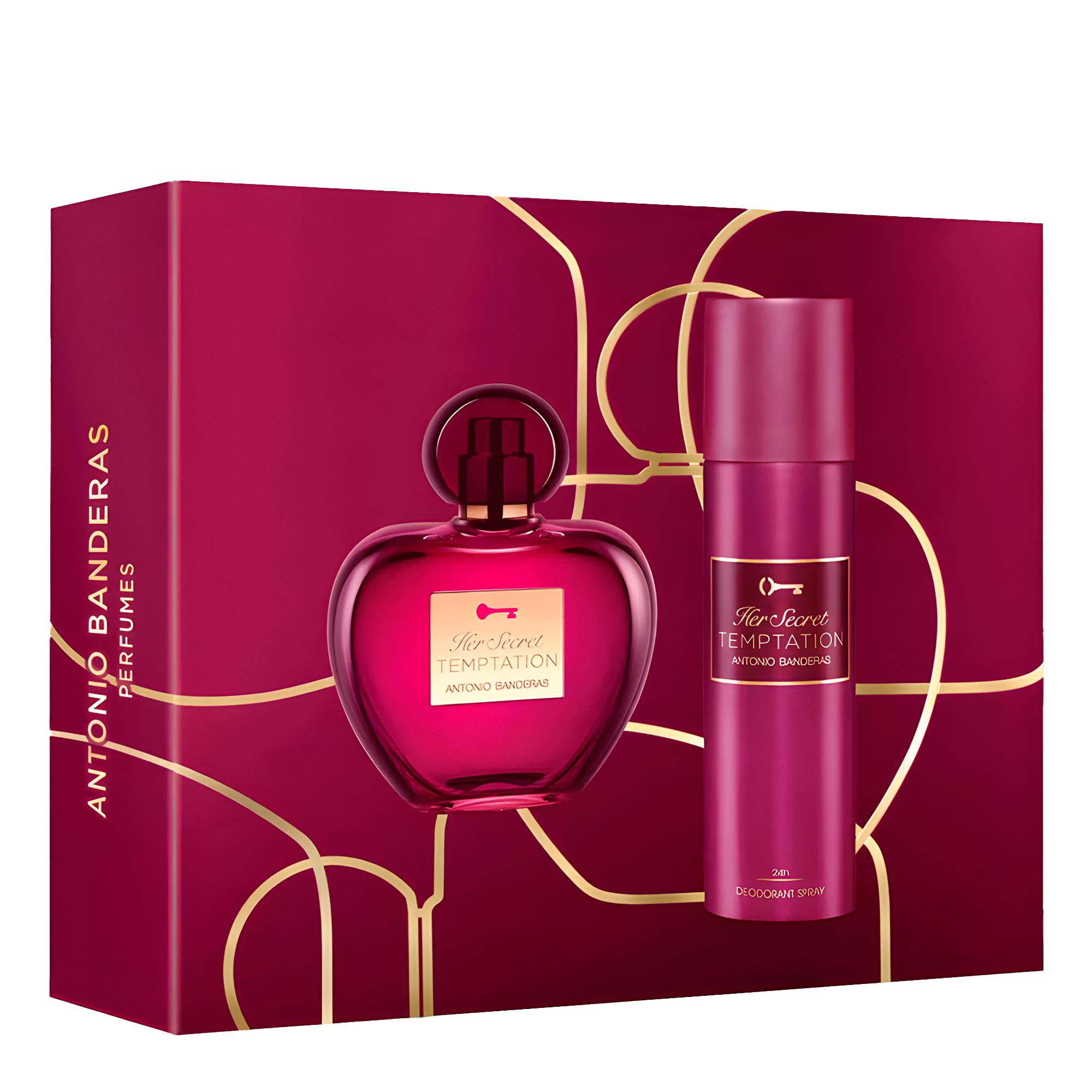 O Kit Her Secret Temptation Feminino Antonio Banderas Eau de Toilette 80ml + Desodorante 150ml é um conjunto de produtos de beleza especialmente desenvolvido para mulheres.