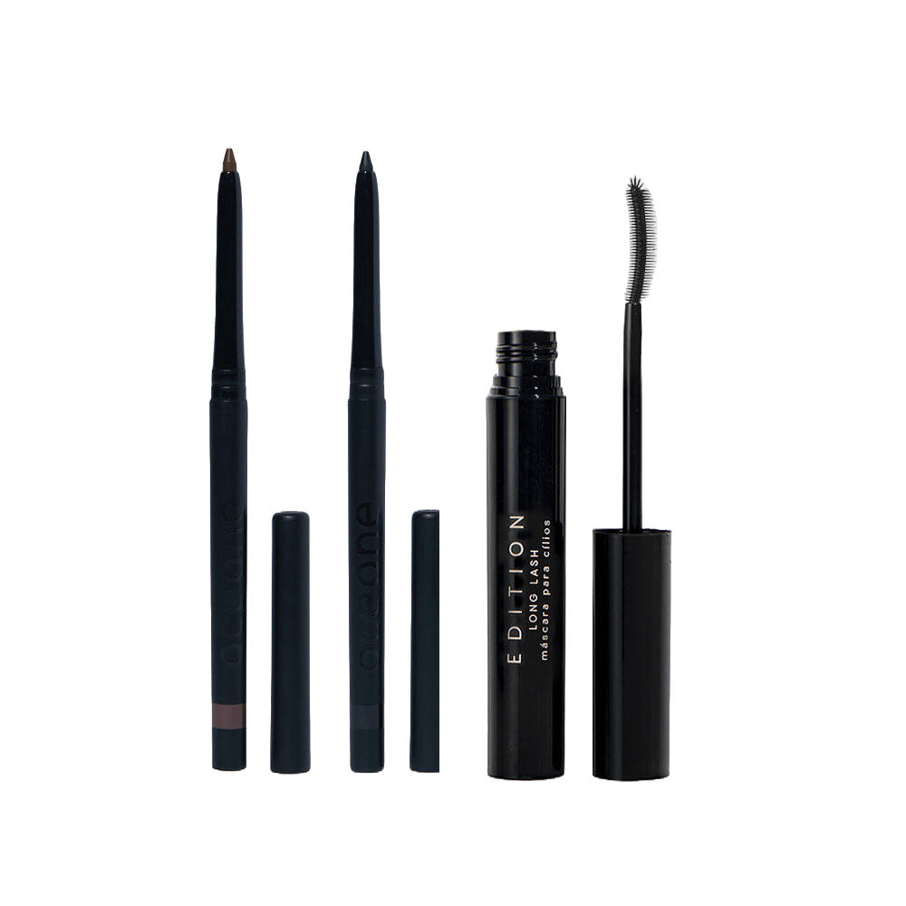 O kit Lápis de Olhos Marrom + Lápis de Olhos Preto + Máscara de Cílios Océane Edition é um conjunto versátil para criar looks incríveis.