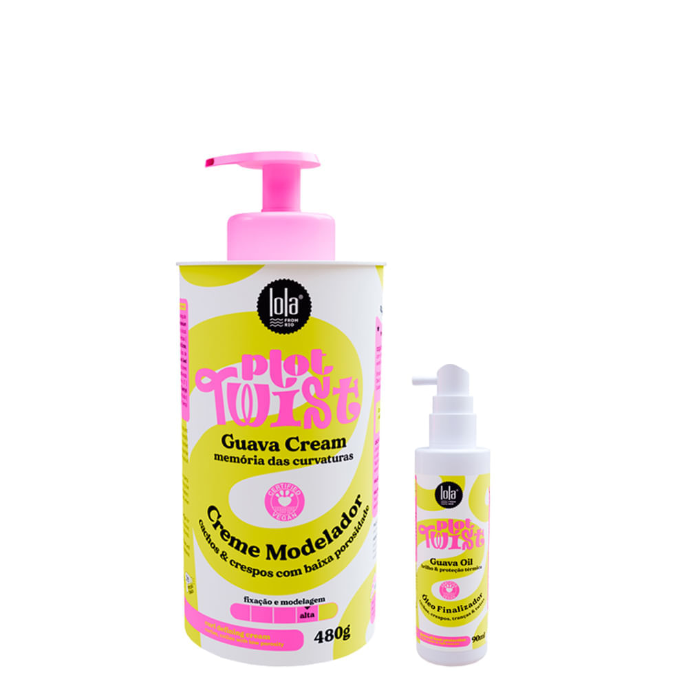 O Kit Lola Cosmetics Plot Twist contém 1 Óleo Capilar de 90 ml e 1 Creme Modelador de 480 gramas.