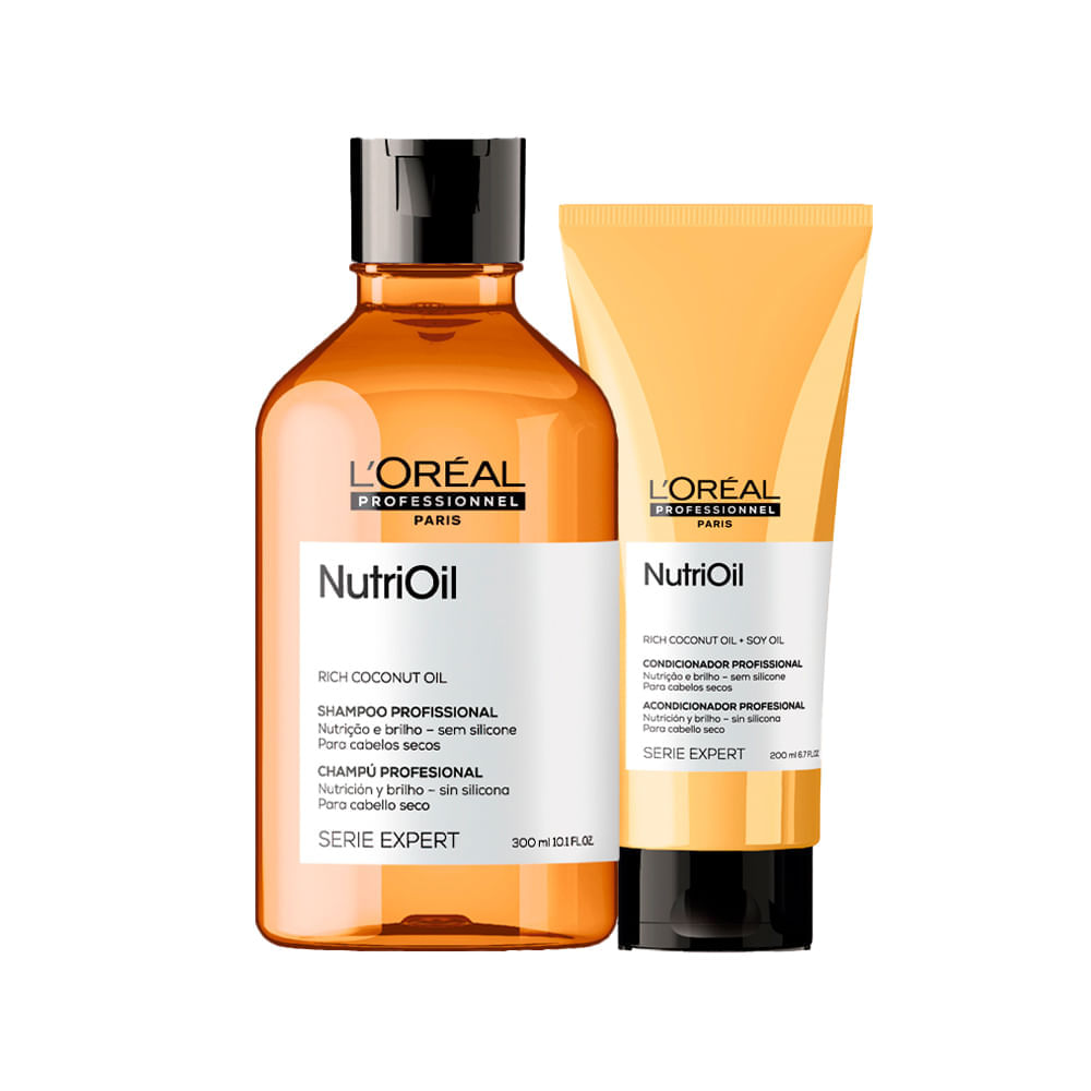O Kit L'Oréal Professionnel Serie Expert NutriOil é um conjunto de produtos para cuidados com os cabelos, contendo 1 Shampoo de 300 ml e 1 Condicionador de 200 ml, formulados para proporcionar nutrição, maciez e brilho aos cabelos.