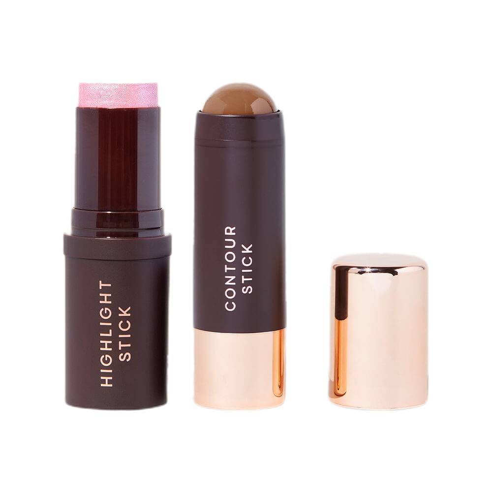 - Kit reúne contorno e iluminador em bastão para pele contornada e iluminada