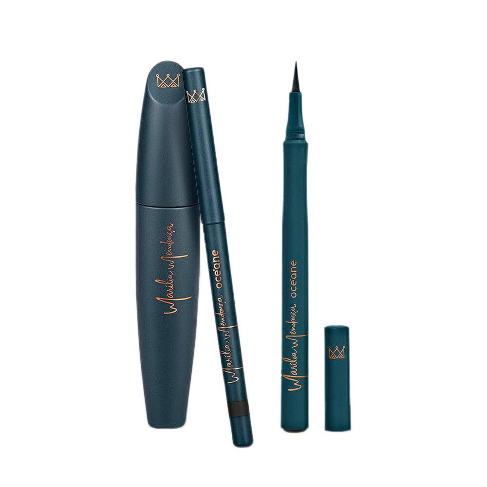 Kit de Maquiagem Marília Mendonça Edição Limitada vem com 3 produtos da linha Marília Mendonça by Océane, que te ajudam a produzir makes incríveis. O kit contém: 1 máscara de cílios, 1 caneta delineadora e 1 lápis de olhos preto retrátil.