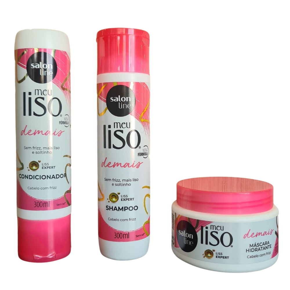 O Kit Meu Liso de Mais Shampoo + Condicionador + Máscara Salon Line foi desenvolvido para quem deseja fios mais lisos, disciplinados e com brilho intenso. Com ação combinada de limpeza, hidratação e nutrição profunda, esse kit proporciona um cabelo macio, alinhado e fácil de cuidar.