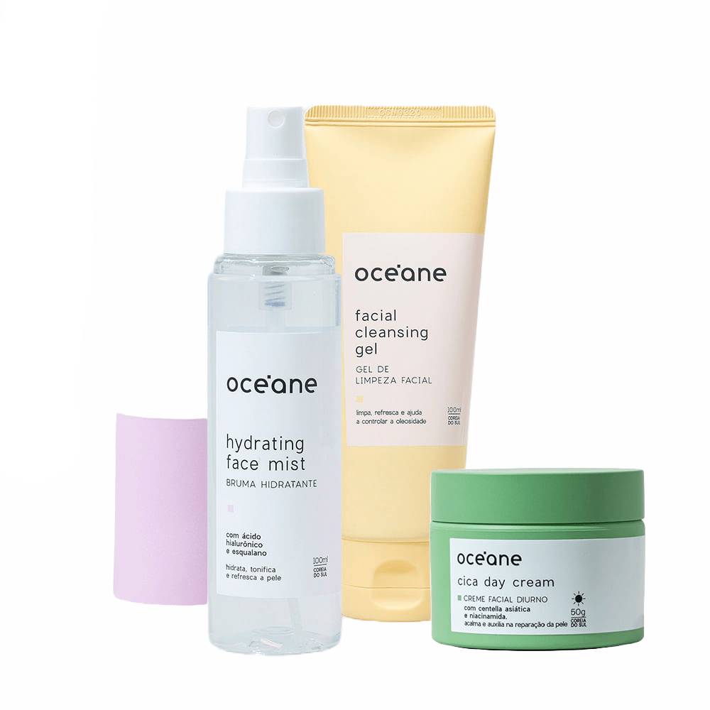 Kit Océane Gel De Limpeza Facial + Creme Facial Diurno Cica + Bruma Hidratante