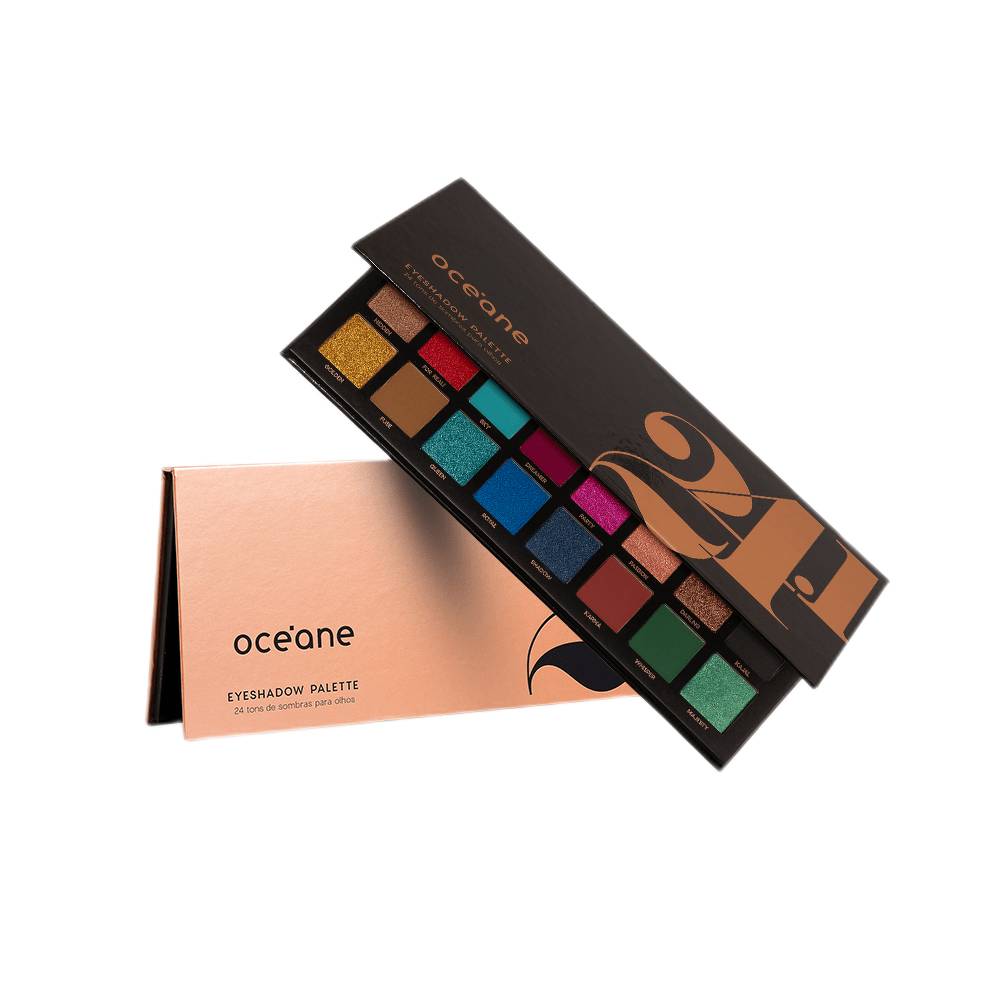 Perfeita para criar maquiagens incríveis para qualquer ocasião. 24 eyeshadow palette: a clássica paleta colorida da océane. São 11 tons opacos e 13 cintilantes, um mix de cores que se complementam.