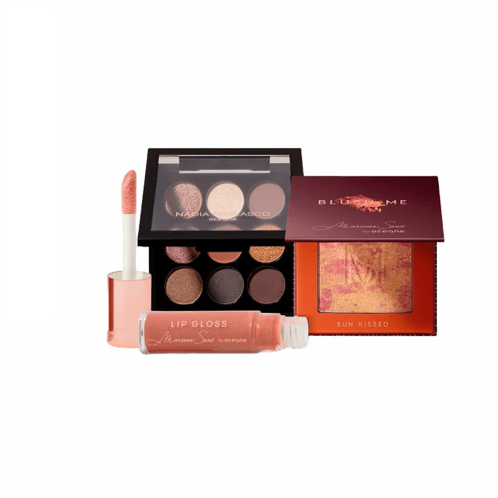 Kit Océane Paleta De Sombras + Blush Sun Kissed + Brilho Labial Nude Me
