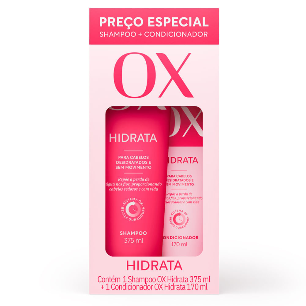 O Kit OX Hidrata Shampoo 375ml E Condicionador 170ml foi desenvolvido para cabelos desidratados e sem movimento, pois repõe a água perdida nos fios, proporcionando cabelos sedosos e com vida.
