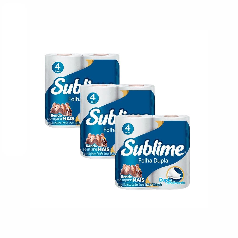 3 pacotes de Papel Higiênico Folha Dupla 30m Sublime com 4 rolos cada
