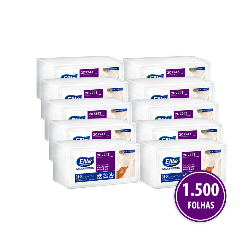 Kit Papel Toalha Excellence Interfolhado Folha Tripla Elite Professional 10x150 Folhas