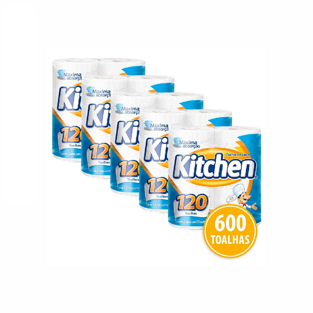 Kit com 5 pacotes de Papel Toalha Folha Dupla Kitchen com 120 folhas cada