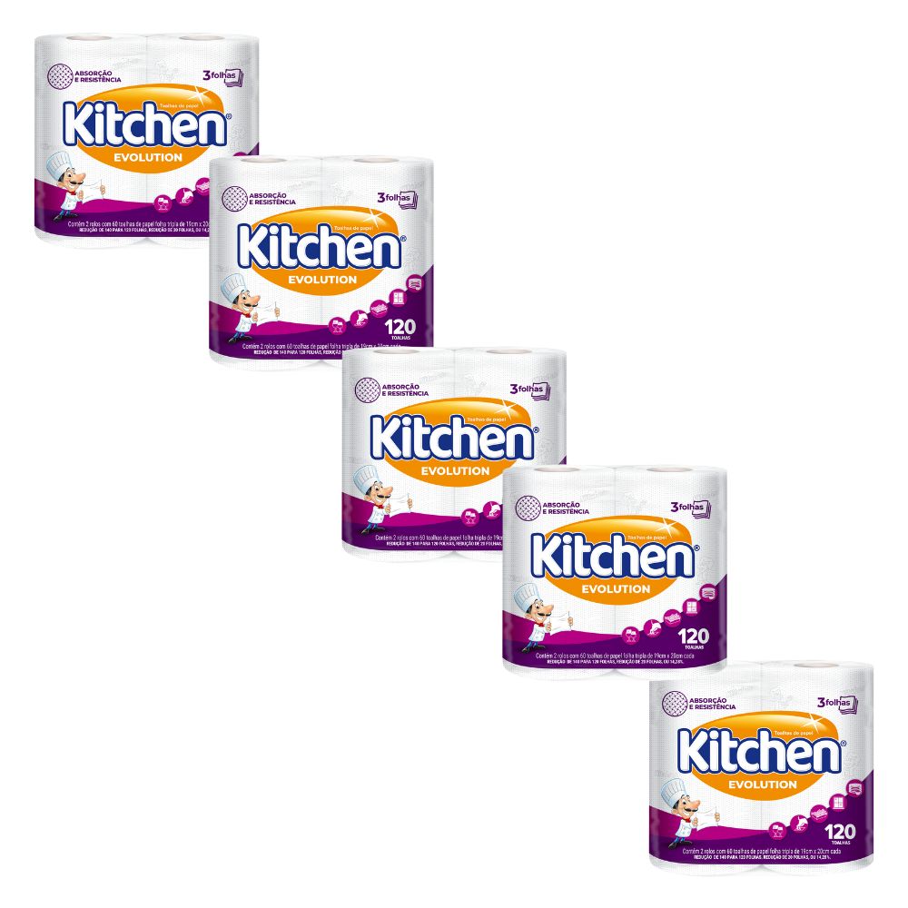 Kit Papel Toalha Folha Tripla Kitchen Evolution 5x120 Folhas
