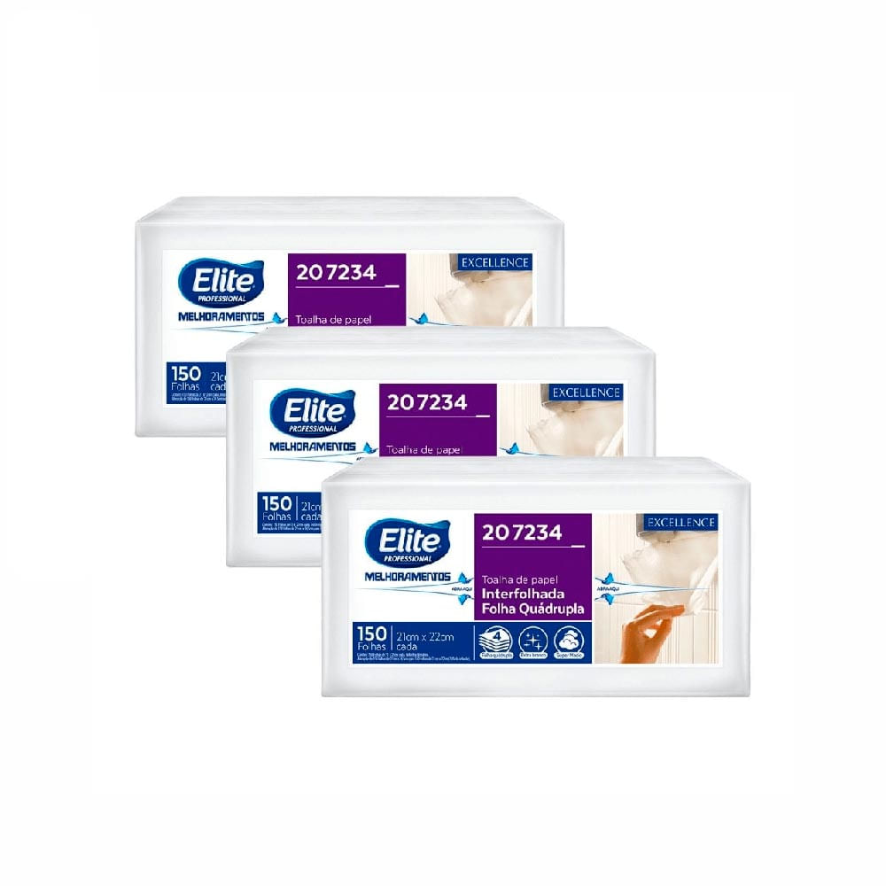 Kit com 3 pacotes de Papel Toalha Interfolhada Elite com 150 folhas cada