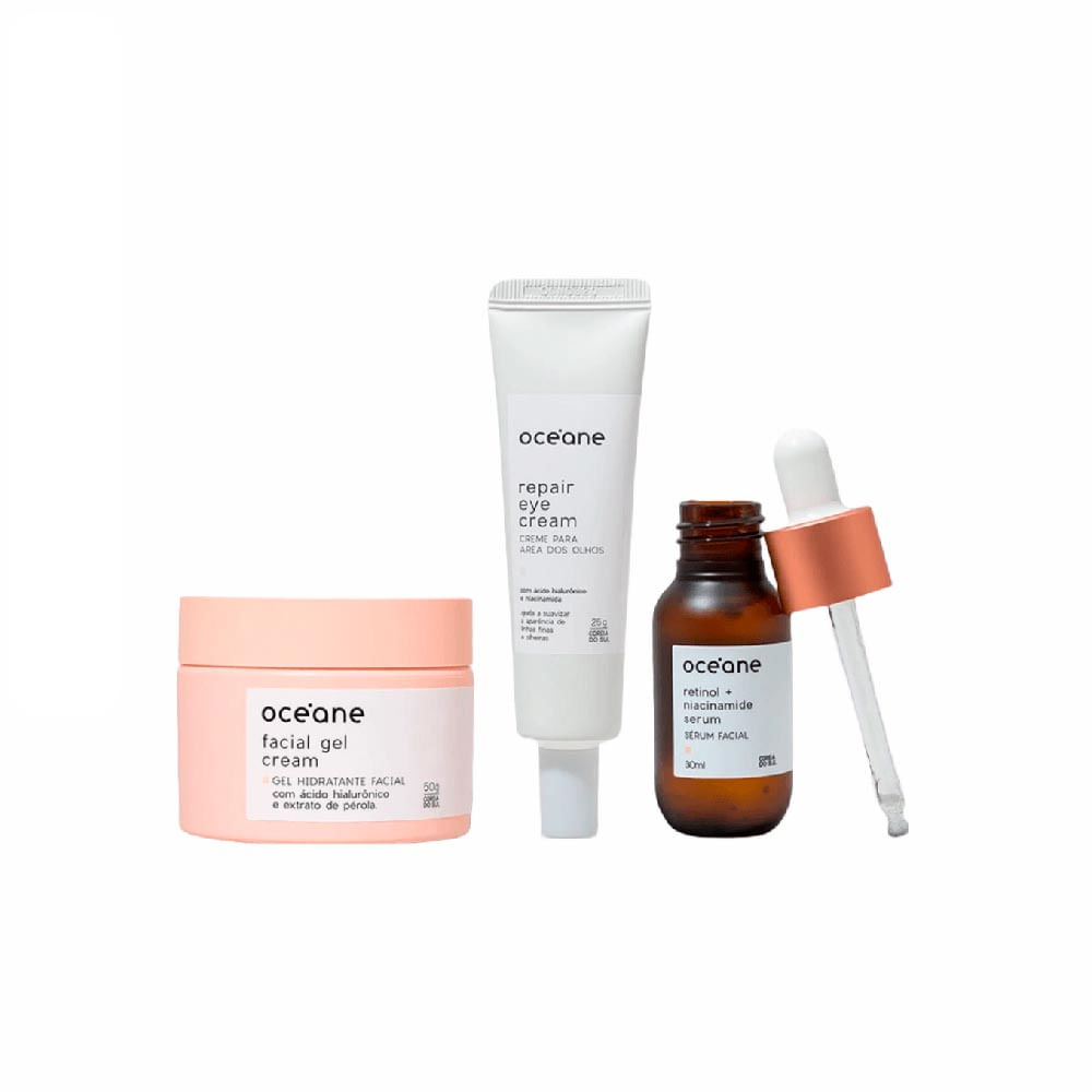O Kit Pele Perfeita Creme para Área dos Olhos + Gel Hidratante + Sérum Facial Retinol e Niacinamida é a combinação ideal para um cuidado facial completo. Composto por três produtos de alta performance, ele promove hidratação intensa, ação antissinais, renovação celular e melhora da textura da pele. Indicado para todos os tipos de pele, com foco especial em peles mistas, oleosas e maduras.