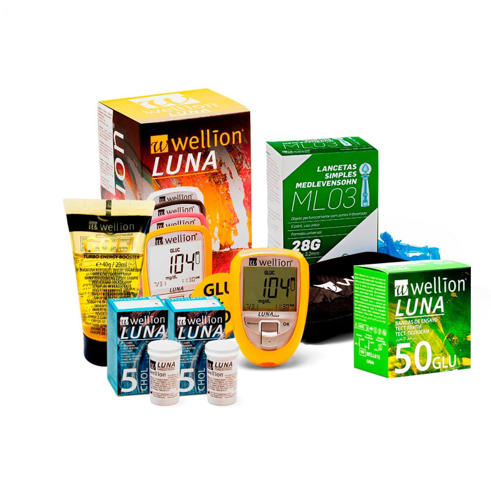 - Medidor de Colesterol e Glicose Luna Duo Amarelo Wellion: Um aparelho moderno e confiável que permite a medição tanto do colesterol quanto da glicose.