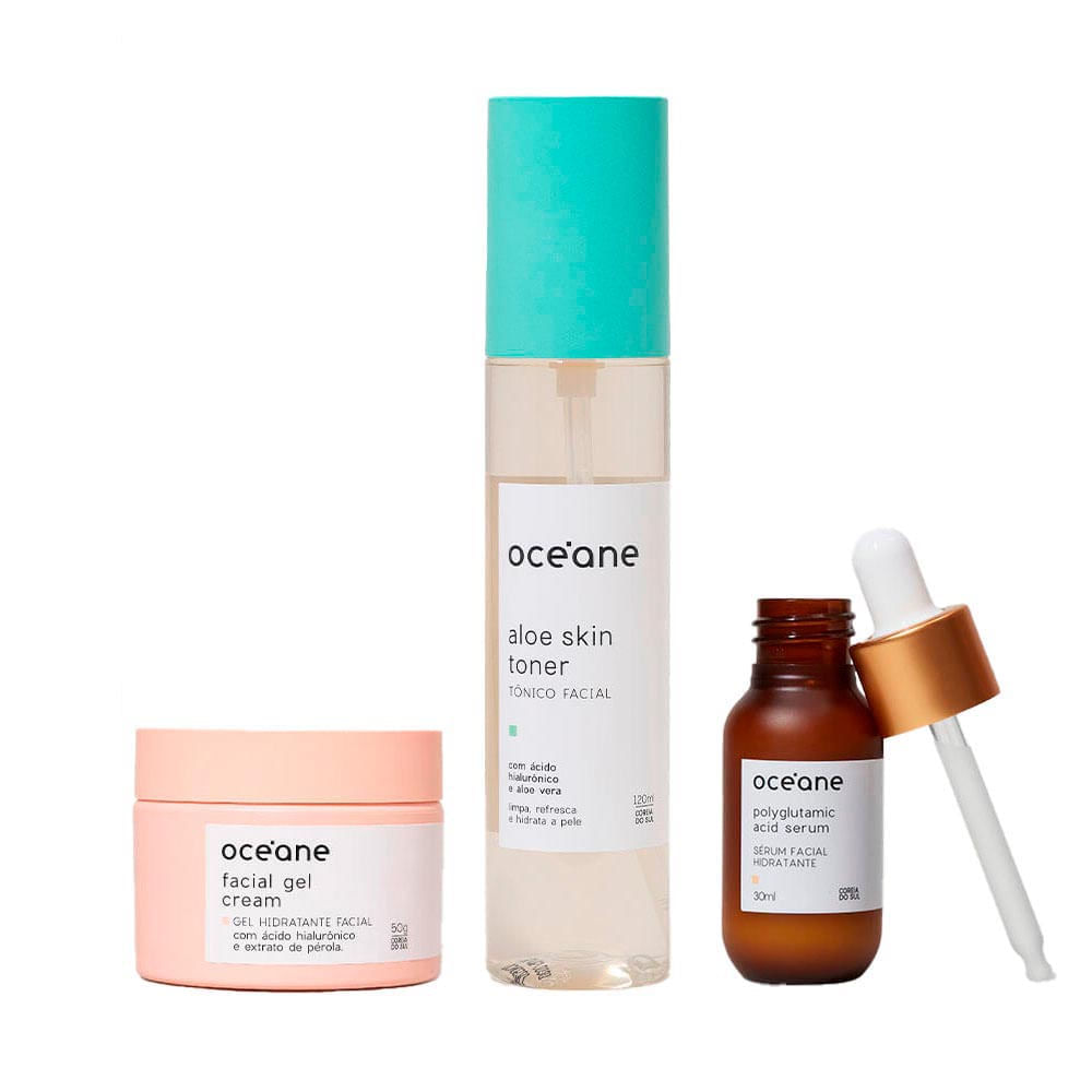 Kit Sérum Ácido Poliglutâmico + Gel Hidratante Facial + Tônico Océane