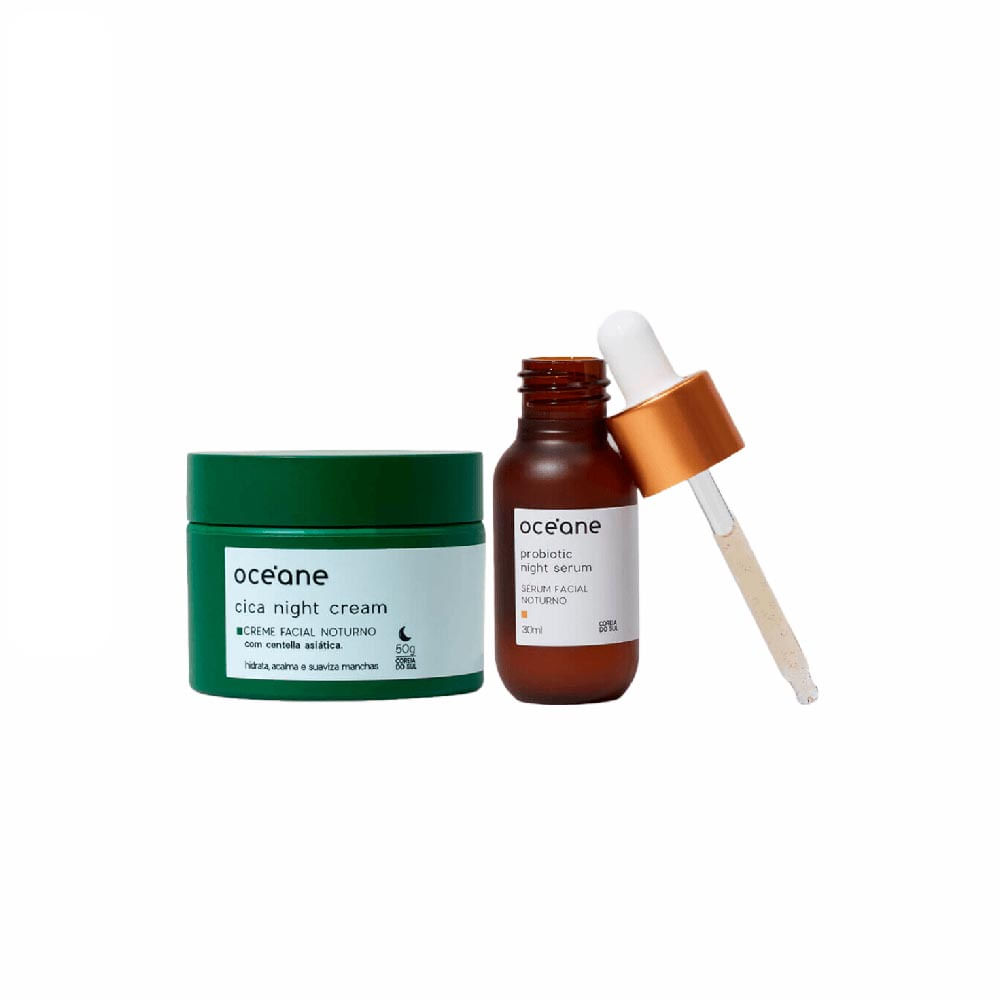 Kit Tratamento Noturno Sérum Facial De Probioticos + Creme Facial Noturno De Cica Océane