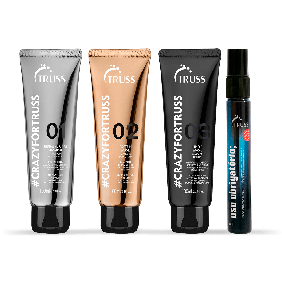 O Tratamento TRUSS #CRAZYFORTRUSS é um protocolo seguro de recuperação e nutrição capilar composto por shampoos e máscaras revitalizadoras. Ele atua de forma ágil e prática para promover o cuidado que suas madeixas precisam. Um choque rápido para deixar ainda mais apaixonada você que já é louca por TRUSS.