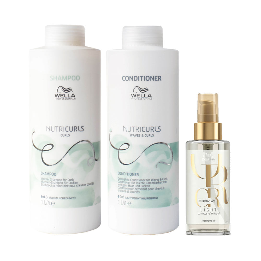Kit Wella Professionals Nutricurls Shampoo 1000 Ml + Condicionador 1000 Ml + Óleo Light 100 Ml