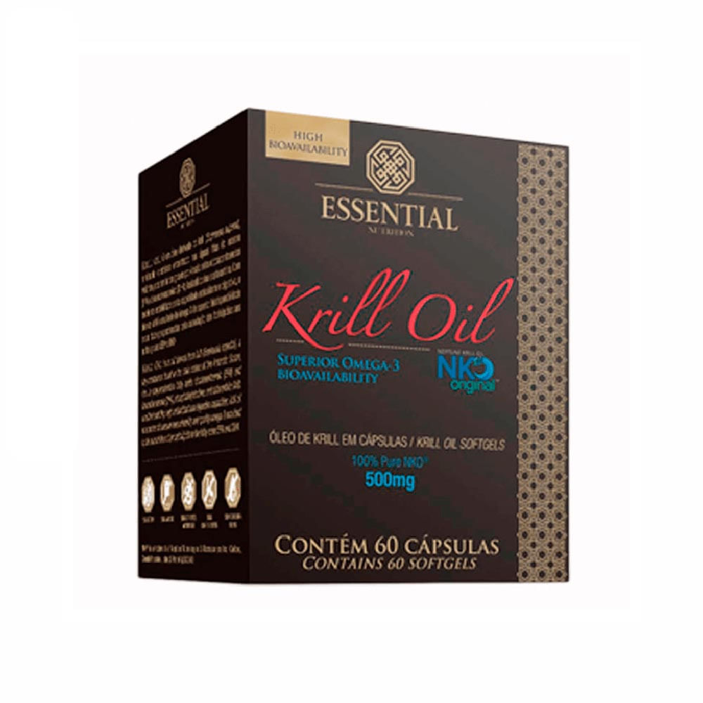 O Krill Oil Essential Nutrition 500mg com 60 cápsulas é um óleo 100% puro originado do krill composto de ácidos graxos EPA e DHA (Ômega-3) juntamente com fosfatidilcolina e astaxantina, extratos com tecnologia patenteada Flexitech que purifica e minimiza o odor característico.