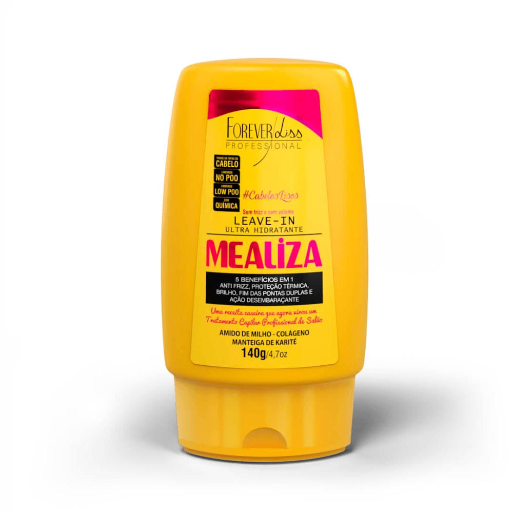 O Leave-in MeAliza Forever Liss 140g é um produto de uso fundamental depois da máscara, pois potencializa a nutrição e prolonga o efeito liso, tanto em cabelos naturais quanto naqueles que têm progressiva, botox ou selante.