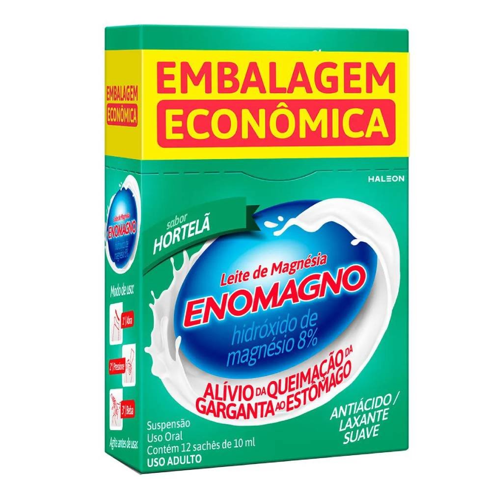 O Leite de Magnésia Enomagno Hortelã é uma suspensão oral à base de hidróxido de magnésio com sabor refrescante de hortelã. Apresentado em formato prático de 12 sachês de 10ml, é indicado como antiácido e laxante suave, proporcionando alívio dos sintomas de azia e desconfortos gastrointestinais.