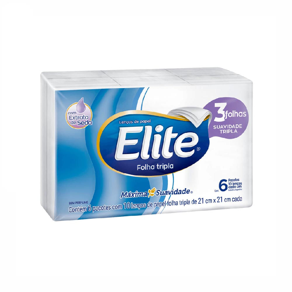 Kit com 6 pacotes Lenço De Papel Elite com 10 folhas triplas