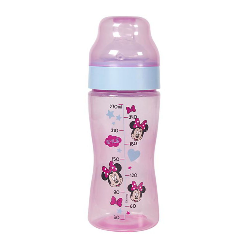 Mamadeira Com Bico Ortodontico Wide Neck 270ml Rosa Minnie Disney