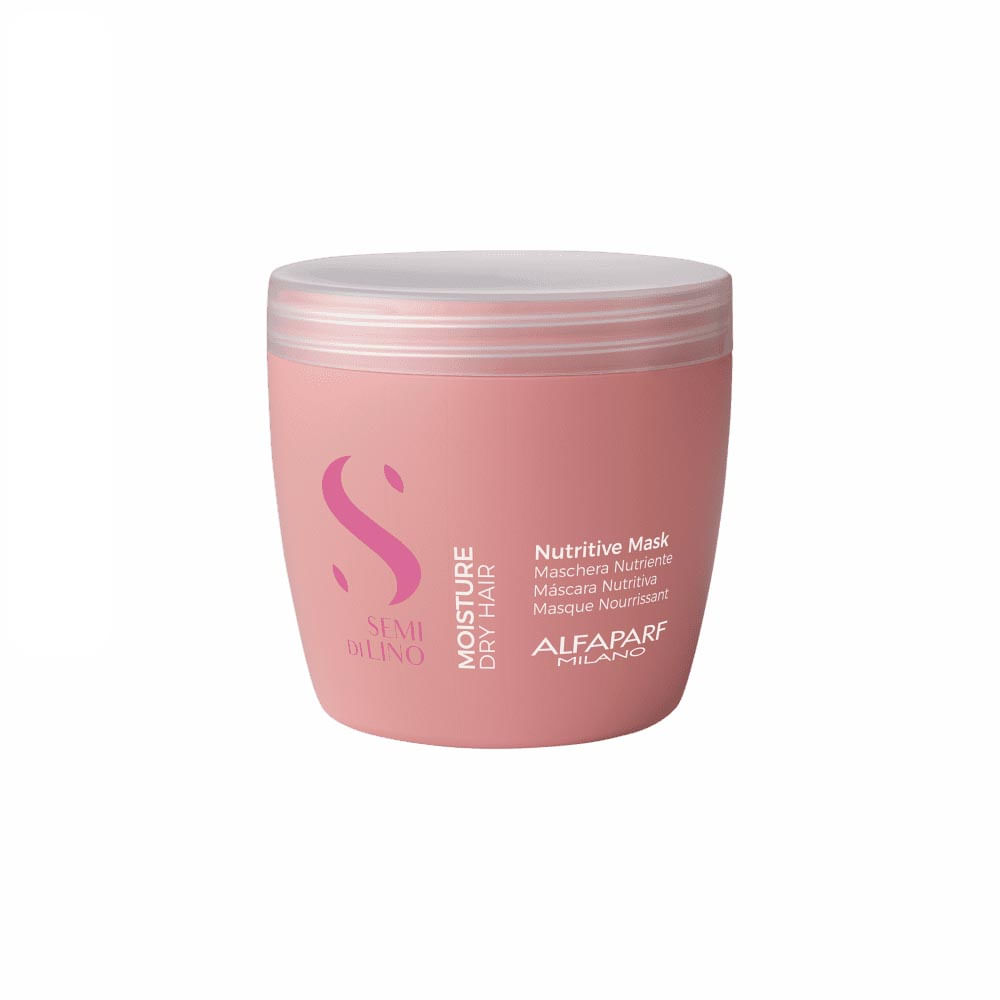 Máscara capilar de nutrição para cabelos ressecados ou secos. Alfaparf Semi Di Lino Moisture Nutritive Mask devolve a hidratação de maneira intensa para fios ásperos, sem vida e sem movimento.