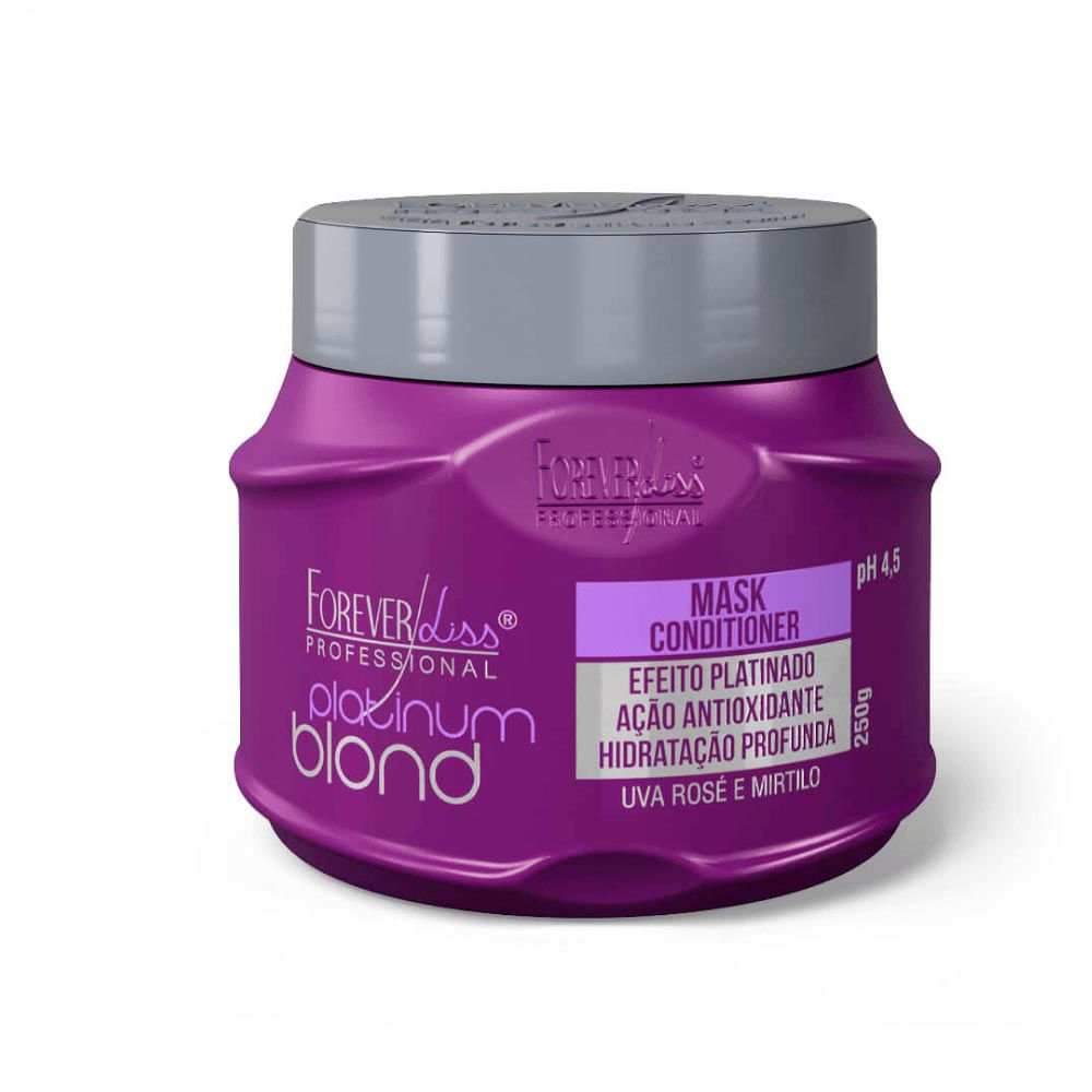 A Máscara Matizadora Platinum Blond Forever Liss 250g foi desenvolvida para proporcionar aos seus cabelos loiros um lindo efeito platinado, devolvendo aos fios a nutrição, hidratação e proteção que eles precisam.