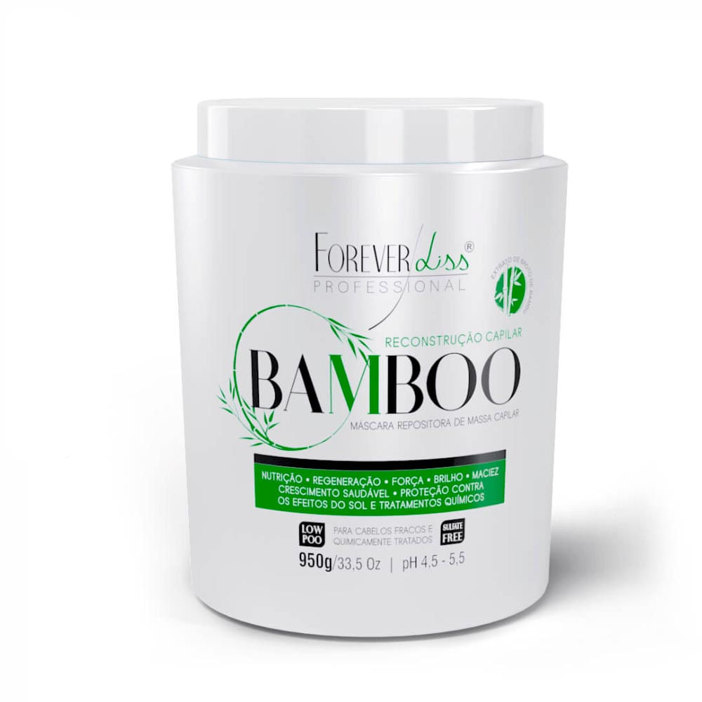 A Máscara Bamboo Forever Liss 950g repara os danos mais profundos e evita o enfraquecimento dos fios, auxiliando crescimento e na regeneração capilar. Recupera a vitalidade, sedosidade e luminosidade natural, resultando em cabelos completamente restaurados e nutridos.