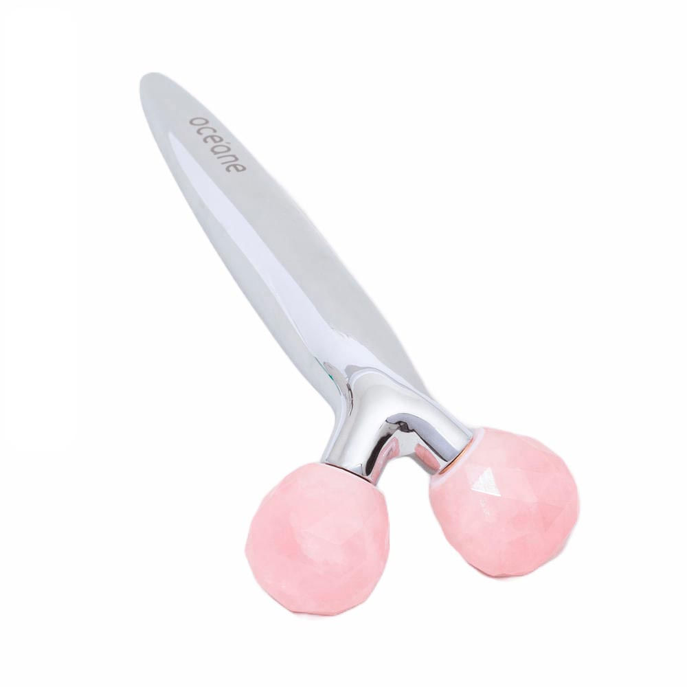 Com design moderno e sofisticado, o massageador facial Océane, possui esferas de quartzo rosa natural especialmente lapidadas, que rotacionam 360 graus e proporcionam uma massagem revigorante.
