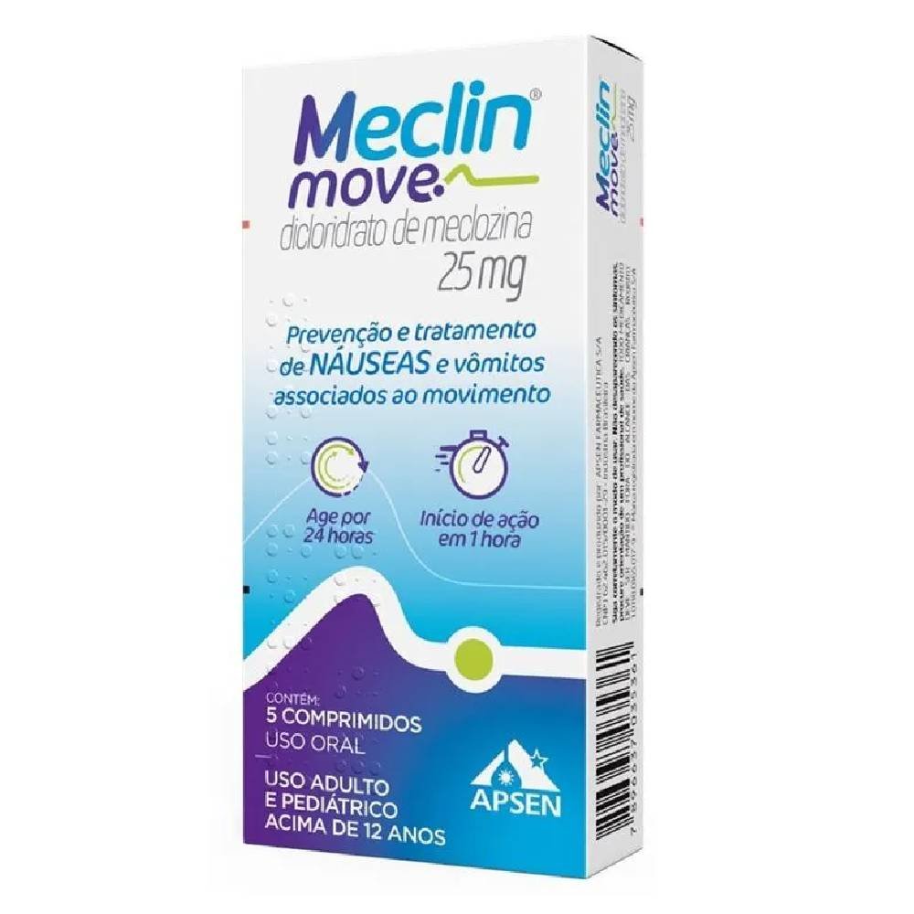 Apresentação: Meclin Move 25mg com 5 comprimidos.