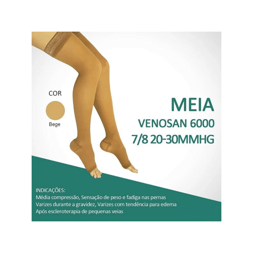 Meia 7/8 Média Compressão Venosan 6000 Agh 20-30 Pe Aberto Bege