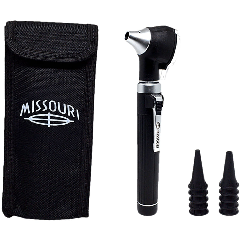 O Mini Otoscópio Preto Missoure foi desenvolvido para permitir que profissionais da saúde avaliem as condições internas dos ouvidos de seus pacientes. Trata-se de um dispositivo leve e compacto, equipado com iluminação LED, lente com aumento de 2,5 vezes e espéculos descartáveis.