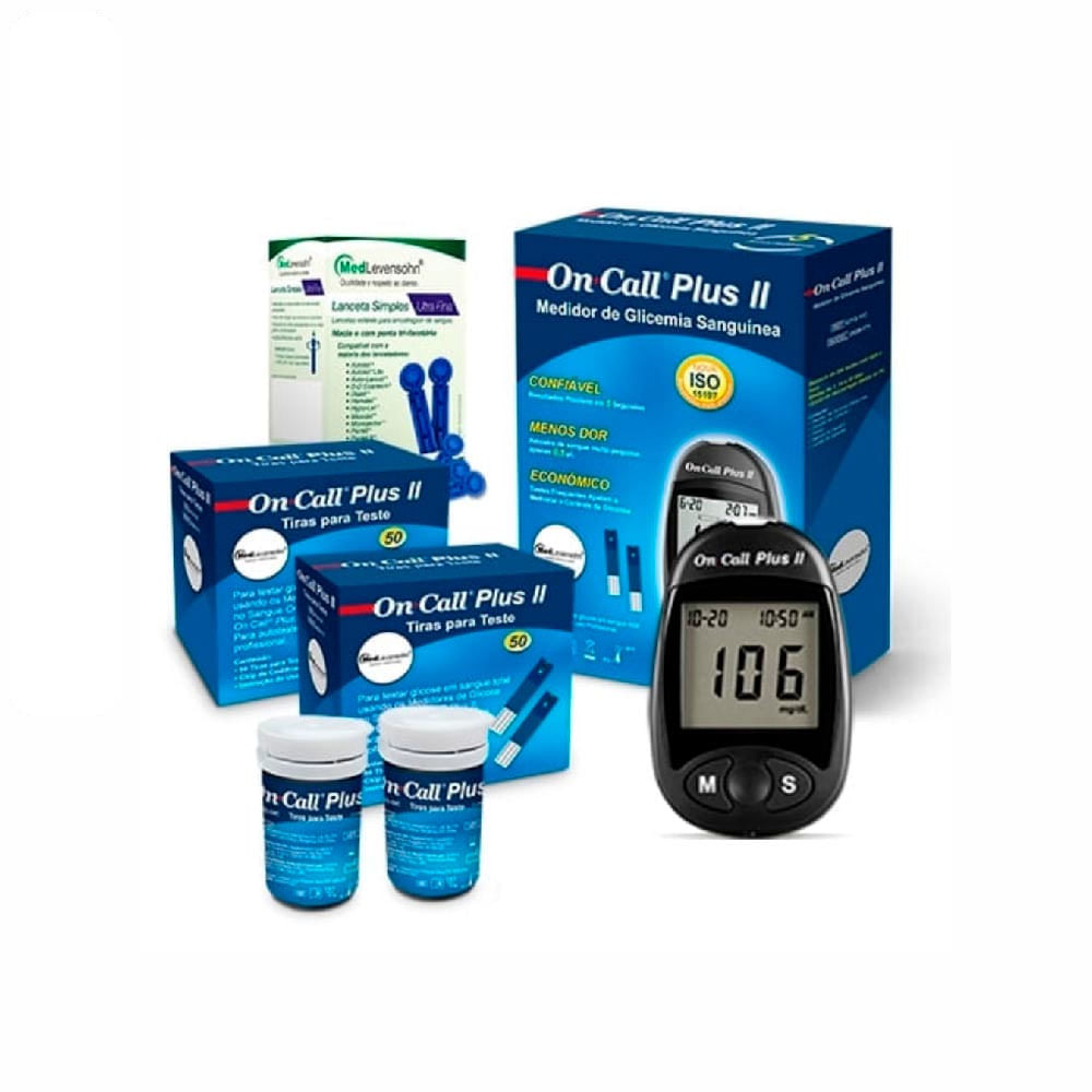 Kit Medidor De Glicose On Call Plus II + 100 Tiras On Call Plus II + 100 Lancetas 28g