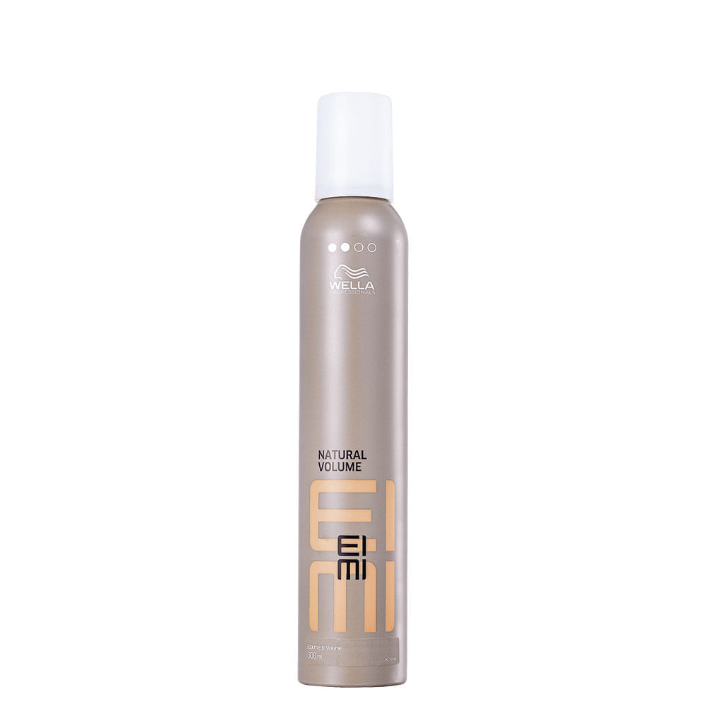 O Mousse Fixador Wella Professionals Eimi Natural Volume de 300 ml, proporciona fixação suave e volume natural aos cabelos.