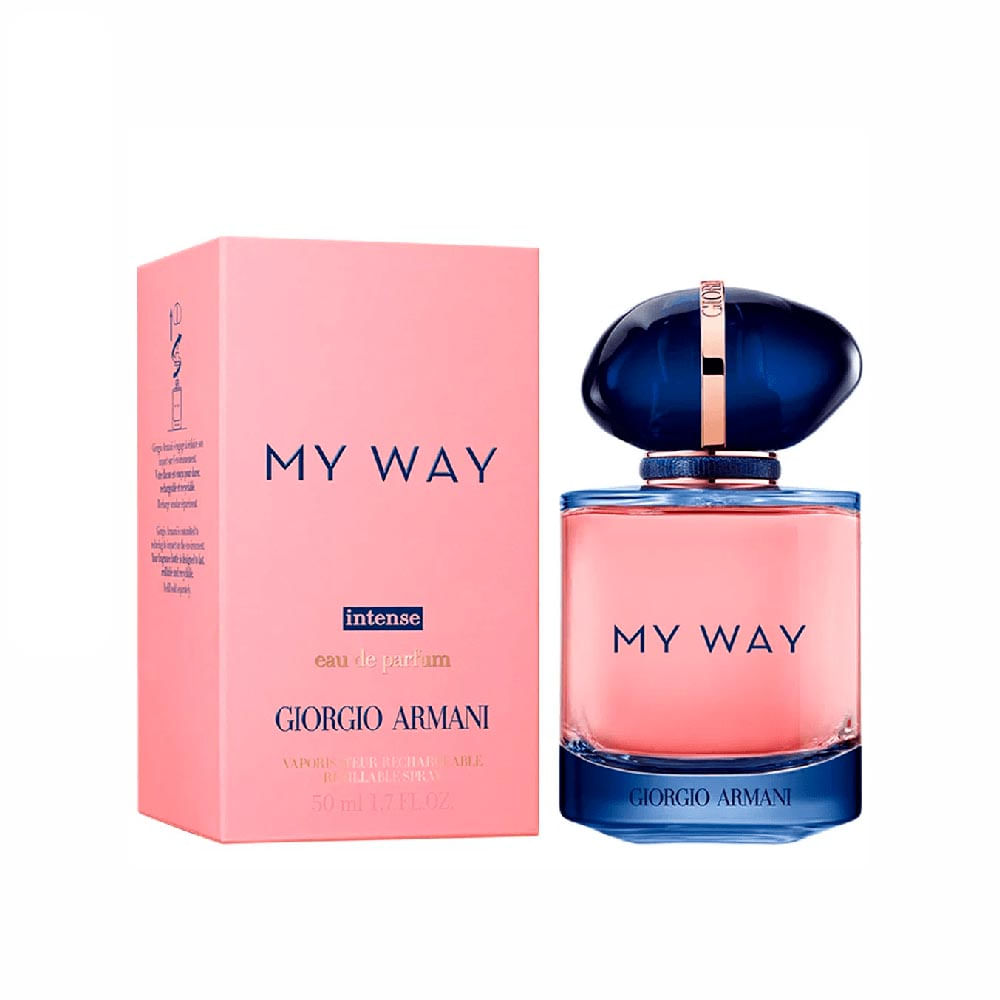 O Perfume My Way Intense, de Giorgio Armani, possui uma fragrância luxuosa, excelente para ampliar seus horizontes e viver encontros significativos em todo o mundo. Seu frasco vem com uma tampa azul e dourada é uma metáfora do mundo. É englobado por um anel dourado, estampado com a assinatura da marca, símbolo de um caminho único que se ilumina a cada encontro.