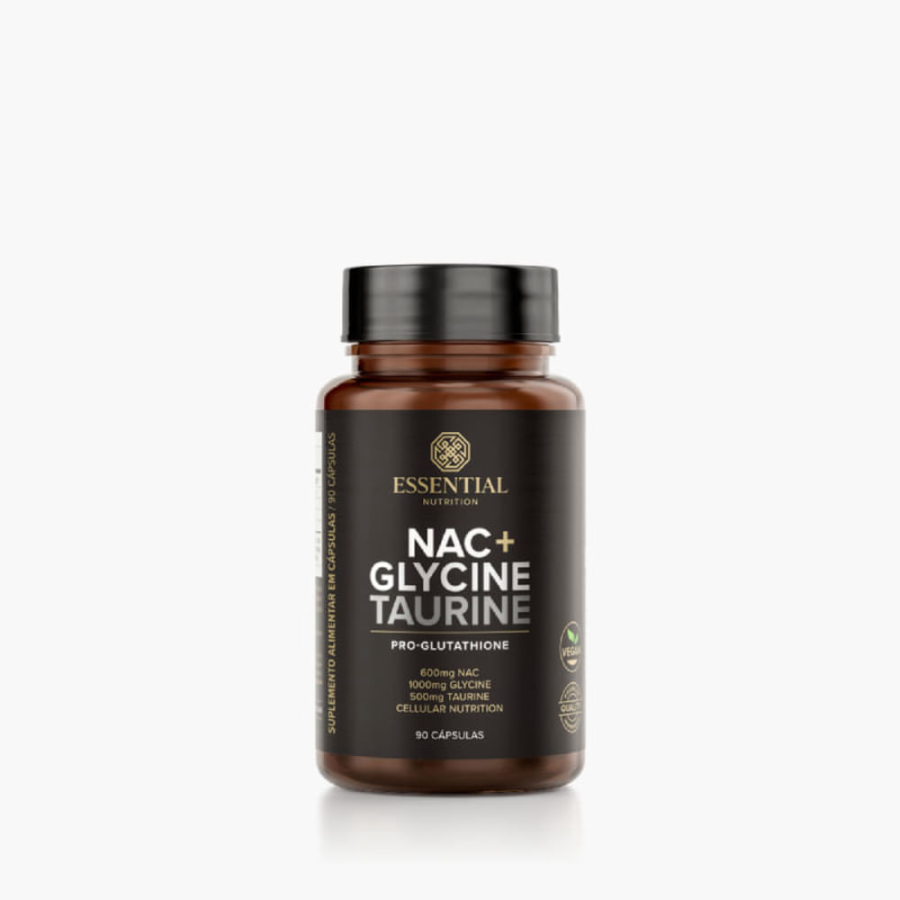 NAC + Glycine + Taurine Essential Nutrition é um suplemento alimentar em cápsulas, formulado com nutrientes que atuam em sinergia para aumentar a produção de glutationa, um poderoso antioxidante natural do organismo.