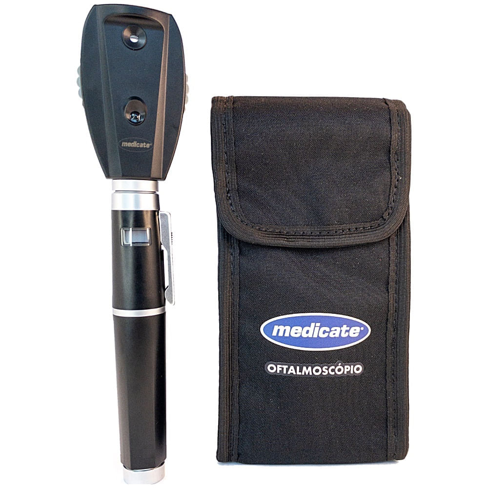 O Oftalmoscópio Medicate MD 8100LED é um dispositivo médico utilizado para examinar o fundo dos olhos, proporcionando excelente nitidez da imagem.