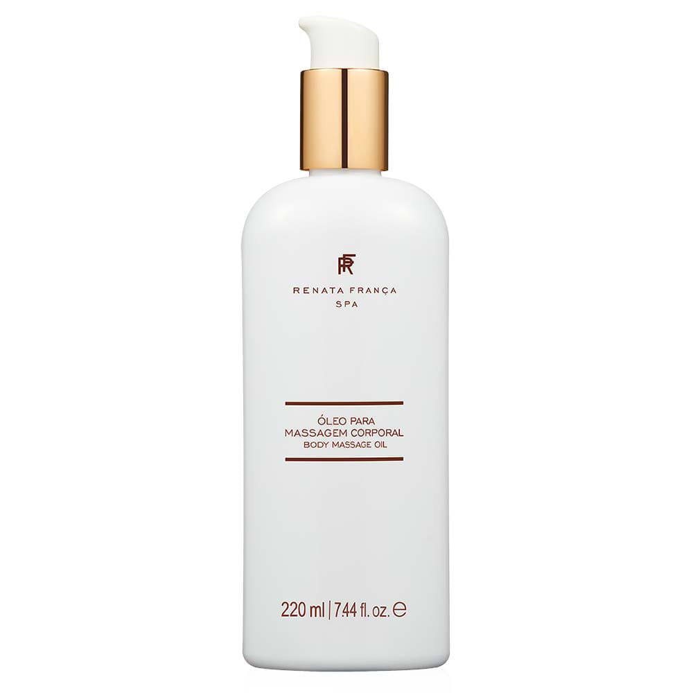 Óleo para Massagem Spa Renata França Atendendo a pedidos, Renata França, esteticista e empresária responsável pela criação da famosa massagem Miracle Touch, desenvolveu o Óleo para massagem corporal Spa Renata França. Com propriedades que potencializam os efeitos da massagem e da drenagem linfática, e fórmula enriquecida com ativos de óleo de coco, amêndoa, linhaça e semente de uva, o resultado é uma hidratação especialmente diferenciada. Mantendo a mesma identidade olfativa do Creme para massagem Spa Renata França.O Óleo para Massagem Spa Renata França é livre de óleo mineral, corantes, parabenos, silicones e etoxilatos. Não contém ingredientes contraindicados para gestantes ou lactantes. Dermatologicamente testado e aprovado. Não testado em animais.Modo de usar: Aplicar o óleo sobre a pele limpa e seca, enquanto utiliza a técnica de massagem de sua preferência.Sugestão de teste para peles sensíveis: aplicar o óleo em uma pequena área do antebraço ou atrás da nuca e deixar o produto agir por 10 minutos. Caso haja reação, como vermelhidão ou coceira, não utilizar o produto.