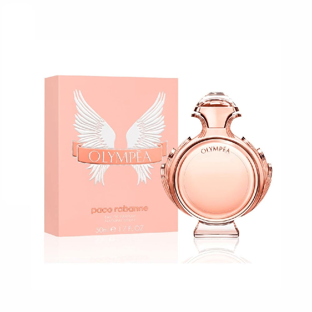O Perfume Olympéa, Paco Rabanne, apresenta um aroma inesquecível, que traz à tona a feminilidade e determinação da mulher que o usa. Conta com notas de Tangerina Verde, Flor de Gengibre e Jasmim Aquático combinadas com notas de coração de Baunilha Salgada e notas de fundo de Ambergris, Caxemira e Sândalo. O frasco remete a todos os símbolos da glória: o tom rosado da fragrância orna harmoniosamente com o vidro em formato de ânfora, em alusão perfeita aos vasos de cerâmica onde os deuses guardavam as bebidas e as folhas de louro, às coroas da vitória.