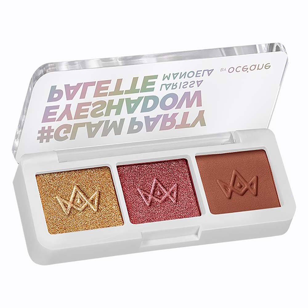 A Paleta de Sombras Glam Party Larissa Manoela by Océane é compacta e perfeita para te acompanhar sempre na bolsa, possui 3 cores fáceis de combinar, com muita pigmentação e fixação.Glamour! Essa palavra está sempre presente na parceira da Océane com a Larissa Manoela. A collab de sucesso sabe como unir sofisticação, modernidade e criatividade nos produtos de maquiagem. Aproveite para se sentir na liberdade de mostrar todas as suas versões! E a Glam Party Eyeshadow Palette veio para inspirar cada vez mais as mulheres de qualquer geração na criação dos mais variados visuais.Essa Paleta de Sombras foi idealizada para mostrar como é possível ter versatilidade em apenas um produto de Maquiagem para os Olhos. Ela conta com fórmula de alta pigmentação e fixação, o que aumenta sua durabilidade, além de textura macia para uma aplicação prática. Apresenta 3 tons, sendo dois com acabamento cintilante e um matte que combinam muito bem entre si, esfumam com facilidade e podem ser usados nos mais variados estilos:• Get Ready - dourado cintilante• Pink Party - rose cintilante• On Time - marrom matteAlém disso, sua embalagem é compacta e resistente, além de ser fácil de transportar. Assim, você pode levar o produto para construir seus visuais na bolsa ou viagens. Ou seja, é um verdadeiro must-have para quem deseja criar produções glamurosas! Você pode usar a paleta sozinha que ela já dá conta do seu look, mas se quiser conhecer outras cores que combinam com essas sombras, conheça nossa linha de Paleta de Sombras.Como esfumar a sombra? O efeito esfumado das sombras cria aquela transição de cor que deixa o acabamento do visual mais natural. E fazer isso é mais fácil do que parece. Com um Pincel fofo, passe a cor sobre o côncavo com leveza, começando pelo canto externo. Faça movimentos de meia lua para contornar bem a região. Intensifique a cor conforme houver necessidade. Na paleta, a sombra marrom matte é ótima para criar esfumados naturais.Como aumentar a durabilidade da maquiagem? Quer que a produção criada pela paleta dure mais tempo? Aqui vai uma dica: a mistura de texturas ajuda a fixar os produtos na pele. Ou seja, você pode usar um corretivo como base para maquiagem em pó ou até mesmo uma Sombra Líquida para auxiliar na fixação. E, claro, sempre mantenha a região bem hidratada para que a pele consiga segurar a cor por mais tempo. Para isso, use produtos de Skincare para Olhos, que combatem o ressecamento e ainda ajudam a combater o envelhecimento precoce da pele dessa região.Quais produtos combinam com a paleta de sombras?Delineadores, máscaras de cílios, produtos para sobrancelhas? Diversos itens que destacam o olhar podem ser usados para complementar o efeito proporcionado pela Glam Party Eyeshadow Palette. Você pode usar e abusar da criatividade na hora de se maquiar! As Maquiagens Larissa Manoela by Océane oferecem diversas opções para você se inspirar, confira!Como remover a maquiagem que eu criar usando a paleta? Apesar da alta fixação, as sombras da paleta são de fácil remoção. Para isso, basta usar o Demaquilante que você está acostumada e pronto! Lembre-se sempre de remover a maquiagem antes de dormir para evitar possíveis danos à pele.Como usar: Escolha o tom e, com o auxílio de um pincel de sombra, aplique na pálpebra com batidinhas leves ou deslizando a sombra sobre a pele, variando de acordo com o efeito desejado.Cuidados: Em caso de irritabilidade, suspenda o uso e procure seu médico de confiança. Mantenha sempre o produto fora do alcance de crianças e armazenado em um ambiente seco e arejado para melhor conservação. Uso externo.Qualquer dúvida sobre os produtos, por favor, enviar e-mail para: info@oceane.com.br